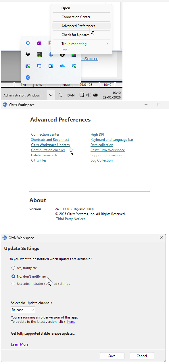 * HUSK at slå automatiske opdateringer fra i Citrix klienten: